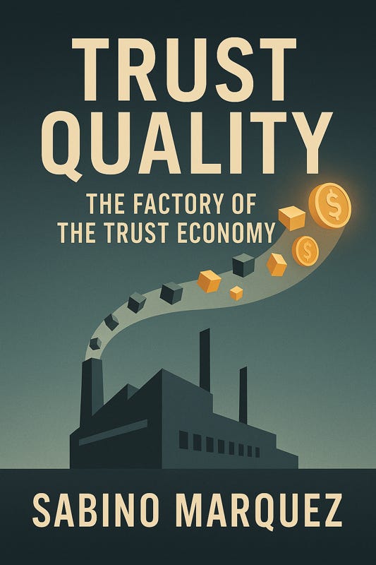 The End of the Slide: The Trust Factory outputs accumulate; Trust Quality sits at the terminus and asks what the market will recognize, consume, and value.